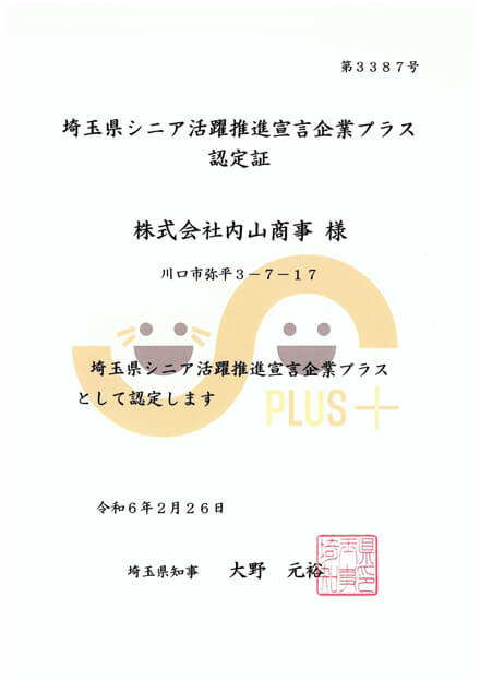 「埼玉県シニア活躍推進宣言企業プラス」の認定を受けています。